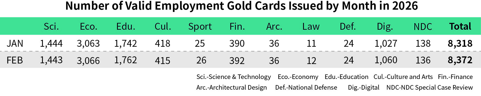 As of February  2026, Employment Gold Card holders were primarily concentrated in the economic …
