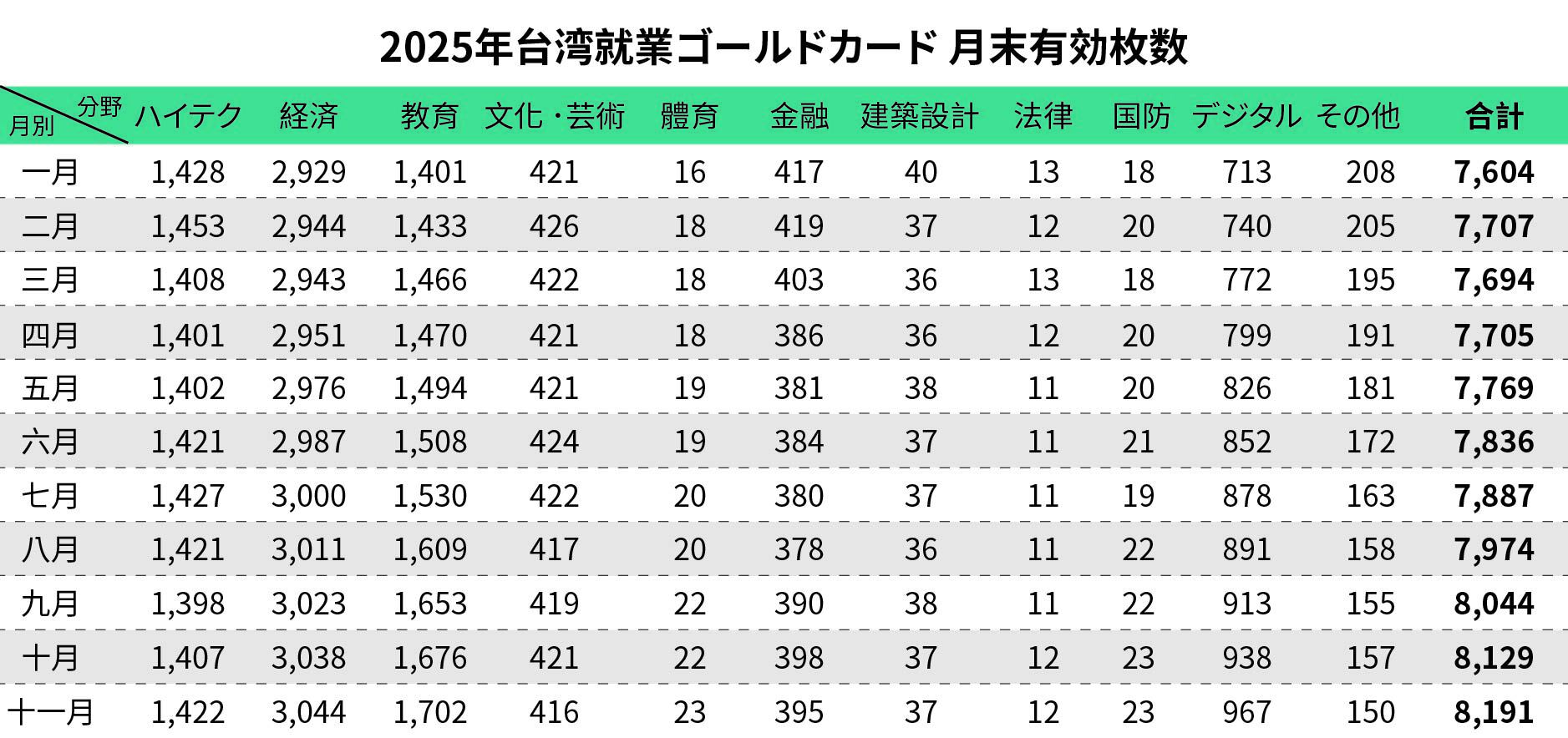 2025年11月30日現在の有効就業ゴールドカードは8,191件、累計許可は15,169件