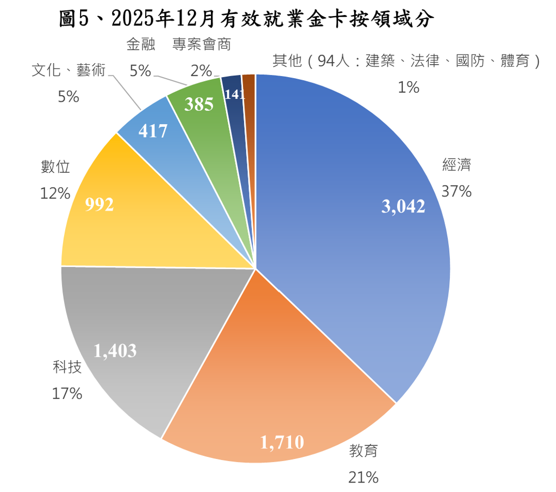 114年12月31日之有效就業金卡為8,184人次,累計許可為15,378人次。