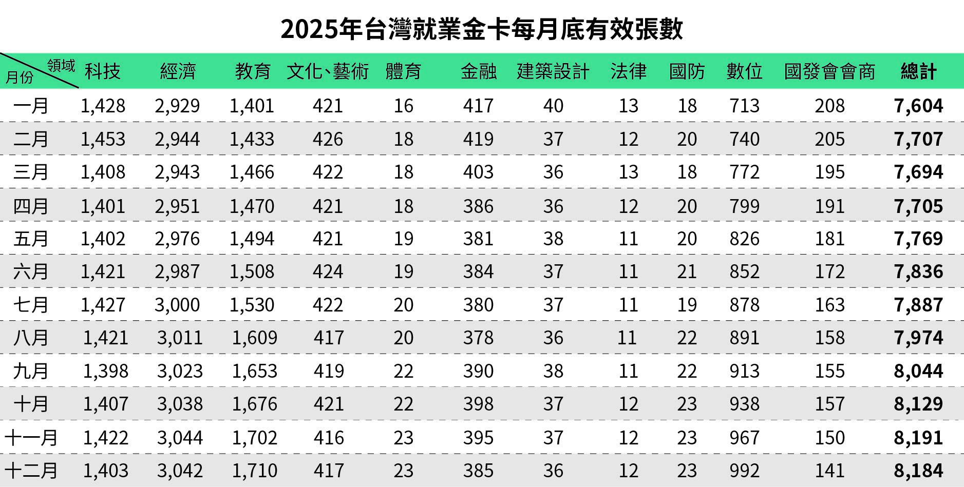 2025年12月就業金卡最新核發數字
